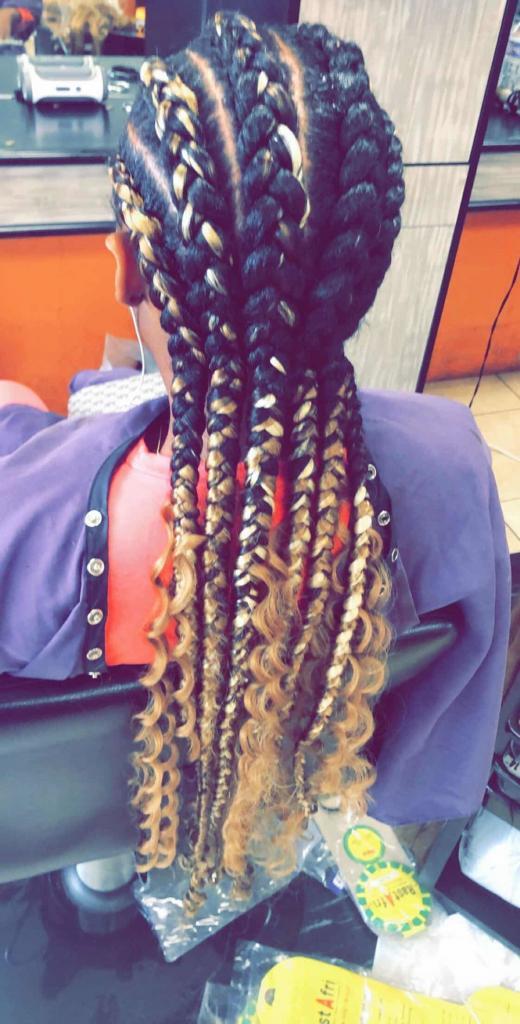 We can create these braids using your natural hair or hair extensions. Generally, there are at least two different braid designs that go into creating the goddess braids.
